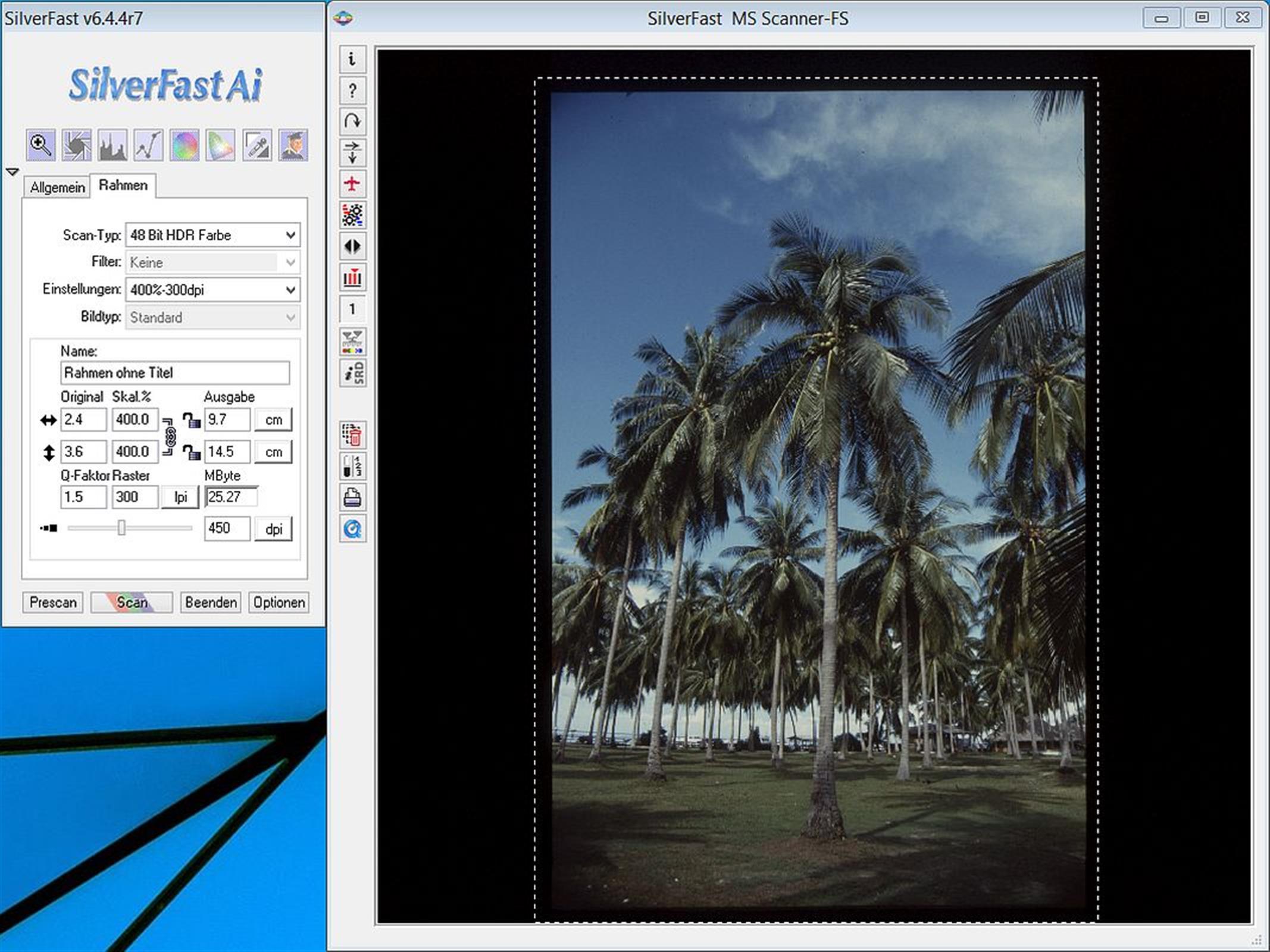 Als Software kommt SilverFast Ai von LaserSoft Imaging zum Einsatz und die erfordert schon etwas Einarbeitungszeit.